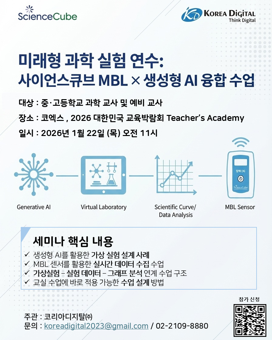 주제 미래형 과학 실험 연수: 사이언스큐브 MBL x 생성형 AI 융합 수업 주관 코리아디지탈